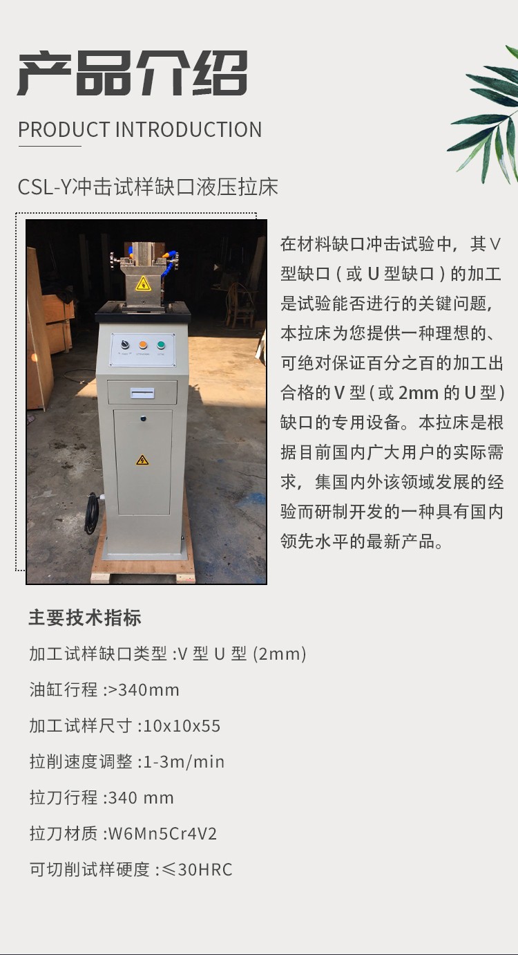 沖擊試樣液壓缺口拉床 金屬材料手動電動液壓拉床U型V型制樣機