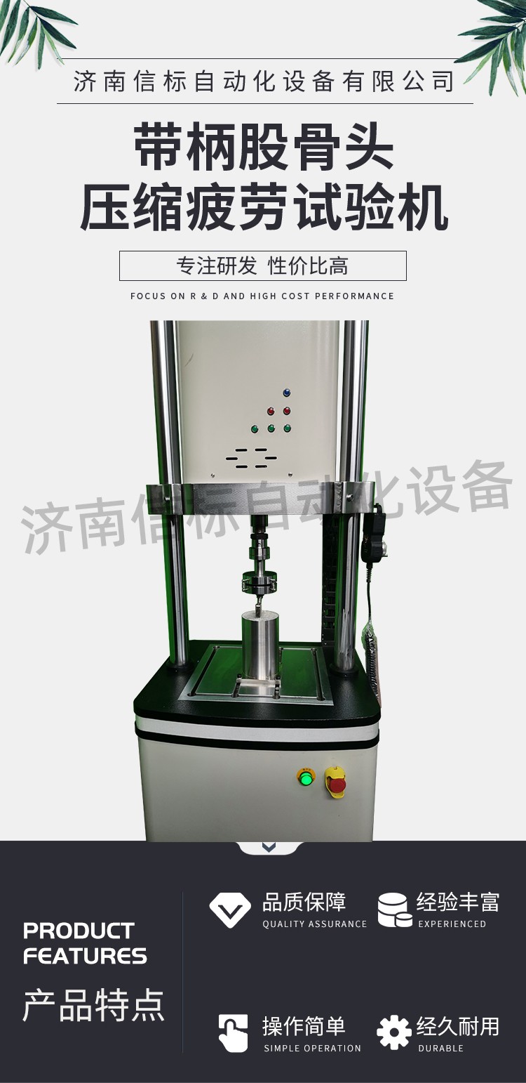 濟南信標自動化設備有限公司主要生產:動靜態萬能疲勞試驗機,接骨板彎曲試驗機,縫合線拉伸疲勞試驗機,髖膝關節磨損試驗機,電子萬能試驗機、液壓萬能試驗機、巖石三軸、四軸,電液拉力試驗機,材料試驗機,高低溫蠕變,高低頻疲勞,拉伸、扭轉、杯突等二十多個系列兩千多個的品種。