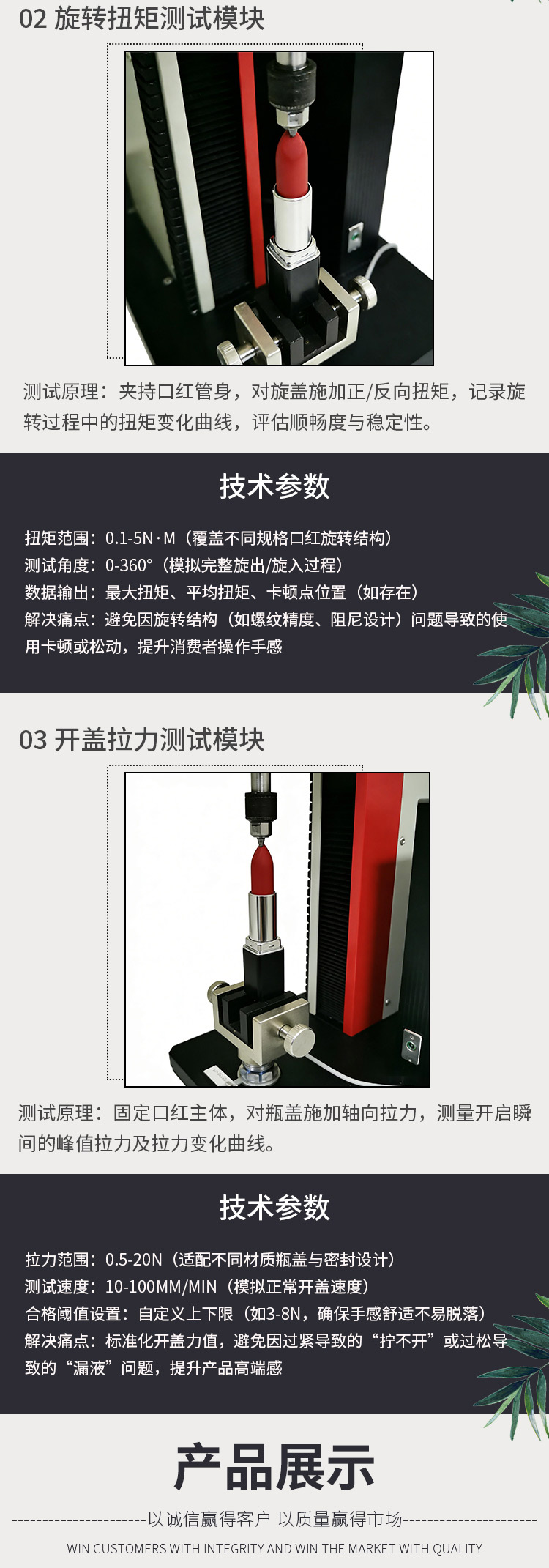 口紅綜合性能試驗(yàn)機(jī) 膏體抗斷測(cè)試 旋轉(zhuǎn)扭矩測(cè)試 開蓋拉力測(cè)試