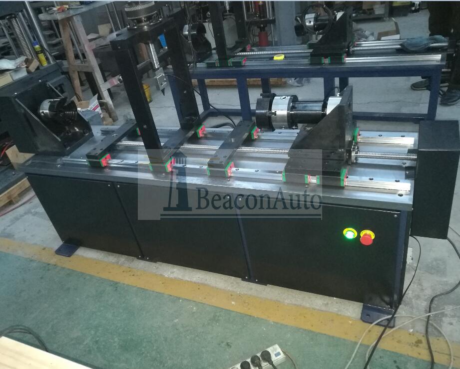 LNW-10000/50/50貫流風葉軸向徑向加載試驗機 主要用途 LNW-10000/50/50貫流風葉軸向徑向加載試驗機主要應用于檢測空調器貫流風葉或其它部件的軸向拉力,徑向扭矩及徑向加載,為空調器制造商和零部件制造商提供了可靠的檢測設備。 貫流風葉軸向徑向加載試驗機特 點 1拉伸和扭轉試驗可以一次裝夾,順序進行。 2顯 示:數字顯示拉力、變形、扭矩、轉角。 3加載方式:電動 4.1自動分析:根據相關標準要求,自動分析試驗數據. 4.2 曲線遍歷:試驗完成后,可對曲線進行分析,用鼠標找出試驗曲線上各點對應的數據; 4.3曲線選擇:可根據需要選擇應力-應變、力-位移、力-時間、位移-時間等曲線進行顯示和打??;并能一目了然的反映出試樣在拉力作用下的破壞過程及試樣每一點的數 據分析。 4.4自動分析:試驗曲線上的任意段可進行局部放大分析。 4.5 批量處理:將多個試驗數據和曲線匯總比較并顯示打印. 4.6試驗報告:多種報告編輯方法(Exsel\World\高級自定義),用戶可根據需要自行編輯報告格式 4.7限位保護:具有程控和機械兩種限位保護; 貫流風葉軸向徑向加載試驗機主要技術指標 試驗及級別:1級 最大拉伸試驗力: 10000N 最大試驗扭矩: 50 Nm 最大徑向試驗力: 500N 位移最小讀數:0.01mm 位移最大讀數:600.00mm 角位移最大讀數:999.99度 角位移最小讀數:0.1度 最大行程:1200mm 電源:220V 50Hz 貫流風葉軸向徑向加載試驗機扭轉部分: 1.項目簡介 扭轉部分是由加載系統、傳動系統、數字式數據采集處理系統及計算機測量控制顯示系統等組成,適用于對軸流風扇靜態扭轉力學的性能測試。該機采用落地臥式結構。計算機屏幕顯示,數字式數據采集控制系統和全數字交流伺服系統組成閉環控制。采用行星擺線針輪減速器傳動,具有加載均勻、穩定、無沖擊現象、數據采集控制準確的特點。 試驗測試功能:Win2000/XP中文操作平臺。使用以圖形為界面的視窗式操作系統,可設定顯示屏幕及操作面板;可設定試驗速度及各種控制參數;可實時顯示基本試驗結果(斷裂值、峰值);可實時顯示試驗過程各種相關參數圖形;可實現系統診斷并顯示診斷結果。試驗機實現分級管理權限。不同的用戶可進入不同的管理界面、分三級用戶管理權限。 整機利用全數字交流伺服控制系統及數字式數據采集處理系統,光電編碼器采集試樣的扭轉角度。 2.目的: 軸流風扇的靜態扭轉實驗 3.貫流風葉軸向徑向加載試驗機方案描述 【主 機】采用臥式結構,主體結構采用焊接結構,以保證整機的剛性。夾具采用優質合金結構鋼40CrNiMoA淬火(HRC45~50)方式,主傳動軸采用優質合金結構鋼淬火處理,保證其使用壽命。試樣的安裝、拆卸方便、快捷。 【驅動系統】由全數字交流伺服控制系統驅動。速度調節范圍寬,加載均勻、穩定。 【傳動系統】采用行星擺線針輪減速器傳動,保證傳動的均勻、穩定及傳動精度??v向空間可以根據汽車半軸的規格進行調整,橫向空間根據驅動橋的規格任意手動調節。 【測量顯示系統】該機采用光電編碼器采集試樣的扭轉角度,高精度扭矩傳感器采集試樣的扭矩。計算機屏幕顯示試樣的扭矩、扭轉角度、扭轉剛度以及各類曲線等。 【軟件操作】 ★控制模式采用智能專家設置系統,用戶可以根據自己的實際要求編制試驗過程控制方式,自動完成試驗。 ★ Windows2000/XP全中文界面,人機對話方式。試驗的全部操作均借助CRT,通過計算機鍵盤與鼠標完成,計算機屏幕顯示試驗扭矩T,扭轉角度θ,扭轉次數,各種試驗曲線(扭矩-時間曲線、扭矩-角度曲線、角度-時間曲線等)試驗機工作狀態等。 ★曲線坐標的大小可以根據實際的試驗數據進行調整。 ★輸出打印各種試驗報表格式(報表格式可以Excel或Word格式輸出)。 ★符合JB/T9370—1999《扭轉試驗機技術條件》及GB10128—88《金屬室溫扭轉試驗方法》數據處理的相關要求。 ★可以設定以正弦波或方波的方式進行循環加載。 ★ 試驗過程可以實現模擬再現。 ★ 可以任意多條試驗曲線疊加對比、輸出打印。 ★ 可以進行數字化調零和標定。 ★ 試驗數據采用數據庫管理方式,便于查詢和維護。 ★ 軟件系統的操作可以實現三級用戶管理,安全、方便、快捷。 【安全保護系統】過載保護、過電流、過電壓保護、超速保護、工作值保護、行進保護等。 4.貫流風葉軸向徑向加載試驗機主要技術性能指標: 4. 1大輸出扭矩:±50Nm;測量范圍:±0.1~±50Nm 4. 2驗扭矩示值相對誤差:±1% 4.3試驗扭矩重復性相對示值誤差:≤1% 4.4扭矩測量范圍:1%~100% 4.5縱向空間:0~1200mm可調 4. 6轉角度分辯率:0.10; 4. 7加載方式:可以設定以一定速度或扭距進行持續加載。 4. 8加載速度:0.005~3r/min任意設定 4. 9加載控制精度為:±2% 4. 10壓電壓:AC380V 50Hz 5.功能要求: 5.1系統集成、加載、操作運行控制由計算機控制,試驗過程的數據采集、記錄由計算機完成,可以實現試驗數據回放,報表輸出; 5.2加載量在設備性能指標的范圍內連續可調穩定輸出; 5.3試驗控制操作集中在控制臺(柜),采用單人坐式操作;試驗件安裝調整符合操作人員立式操作的要求;試驗工裝需要必要的旋轉功能,方便主減齒輪試驗時主減速器的安裝、拆卸; 二軸向及徑向加載部分 1.1全數字交流伺服電機和伺服驅動器,調速比可達1:30;該系統控制精度高、穩定性好,運行平穩可靠、響應快、噪音低,并具有過載、過流、過壓、欠壓、過熱、 異常停止、故